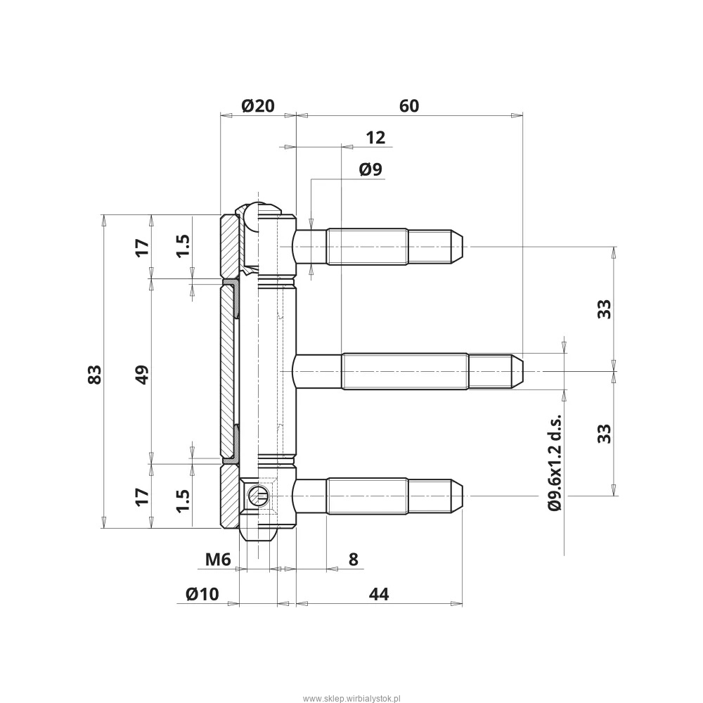 OTLAV zawias wkręcany 320-200 Ø20mm ocynk biały