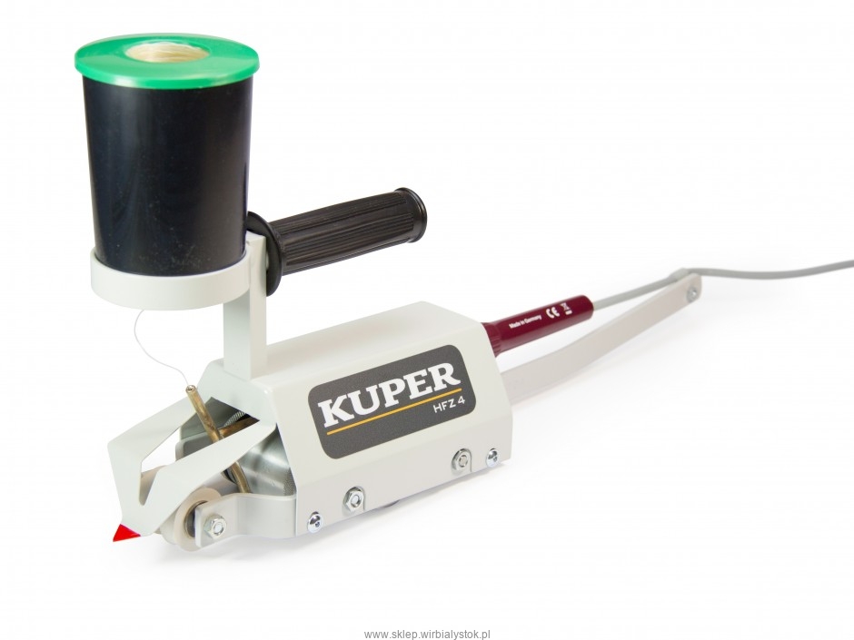 Ręczna spajarka do łączenia wzdłużnego fornirów za pomocą nitki klejowej nanoszonej metodą zygzakową, tzw. Zick-Zack.